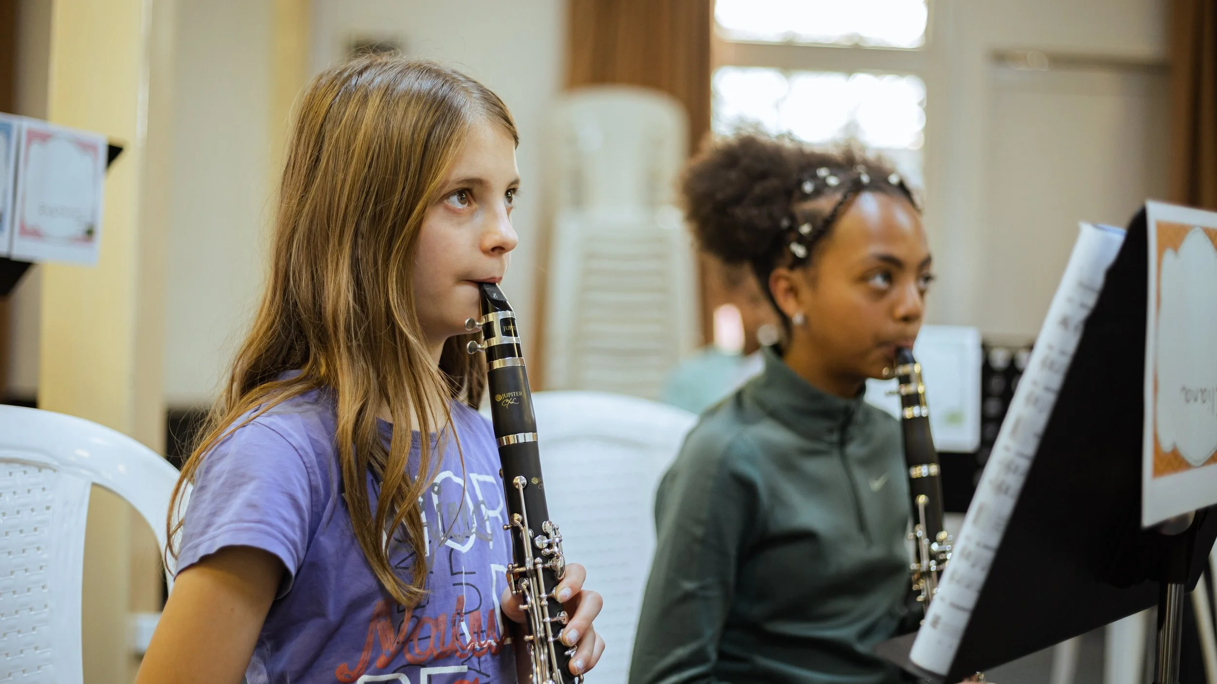 Beginning in Grade 5, students are given the opportunity to learn one of five beginning band instruments - flute, clarinet, trumpet, trombone, or percussion. Through small group instrumental lessons and weekly band rehearsals, students learn the basics of their chosen instrument, as well as experience the joy of making music with others! The band program continues into Middle School, where students participate in either the Intermediate or Advanced Band. With twice-weekly band rehearsals, students make impressive progress and are able to enjoy playing and performing increasingly challenging repertoire.